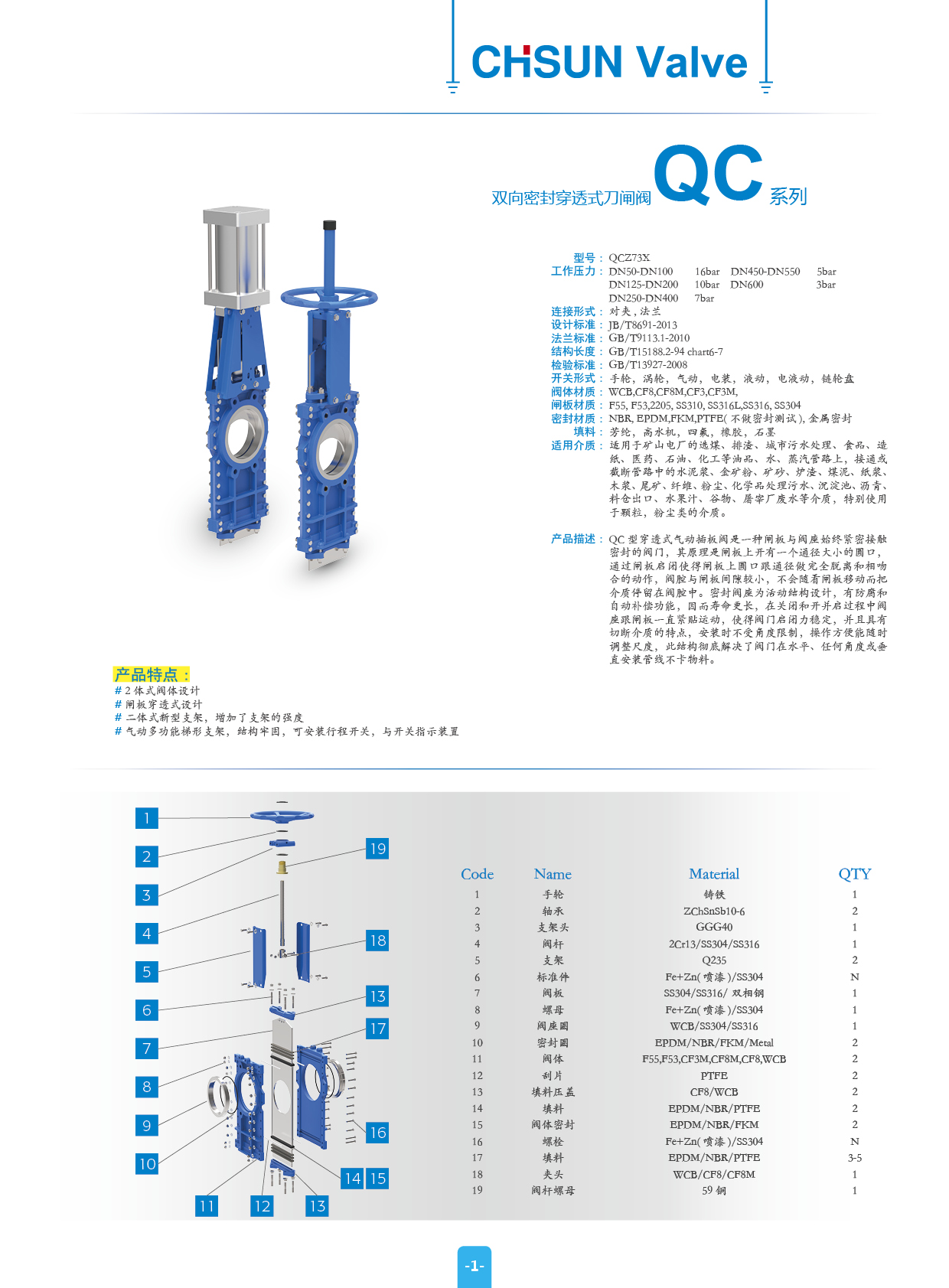 產品介紹:QC 型穿透式氣動插板閥是一種閘板與閥座始終緊密接觸 密封的閥門,其原理是閘板上開有一個通徑大小的圓口, 通過閘板啟閉使得閘板上圓口跟通徑做完全脫離和相吻 合的動作,閥腔與閘板間隙較小,不會隨著閘板移動而把 介質停留在閥腔中。密封閥座為活動結構設計,有防腐和 自動補償功能,因而壽命更長,在關閉和開并啟過程中閥 座跟閘板一直緊貼運動,使得閥門啟閉力穩定,并且具有 切斷介質的特點,安裝時不受角度限制,